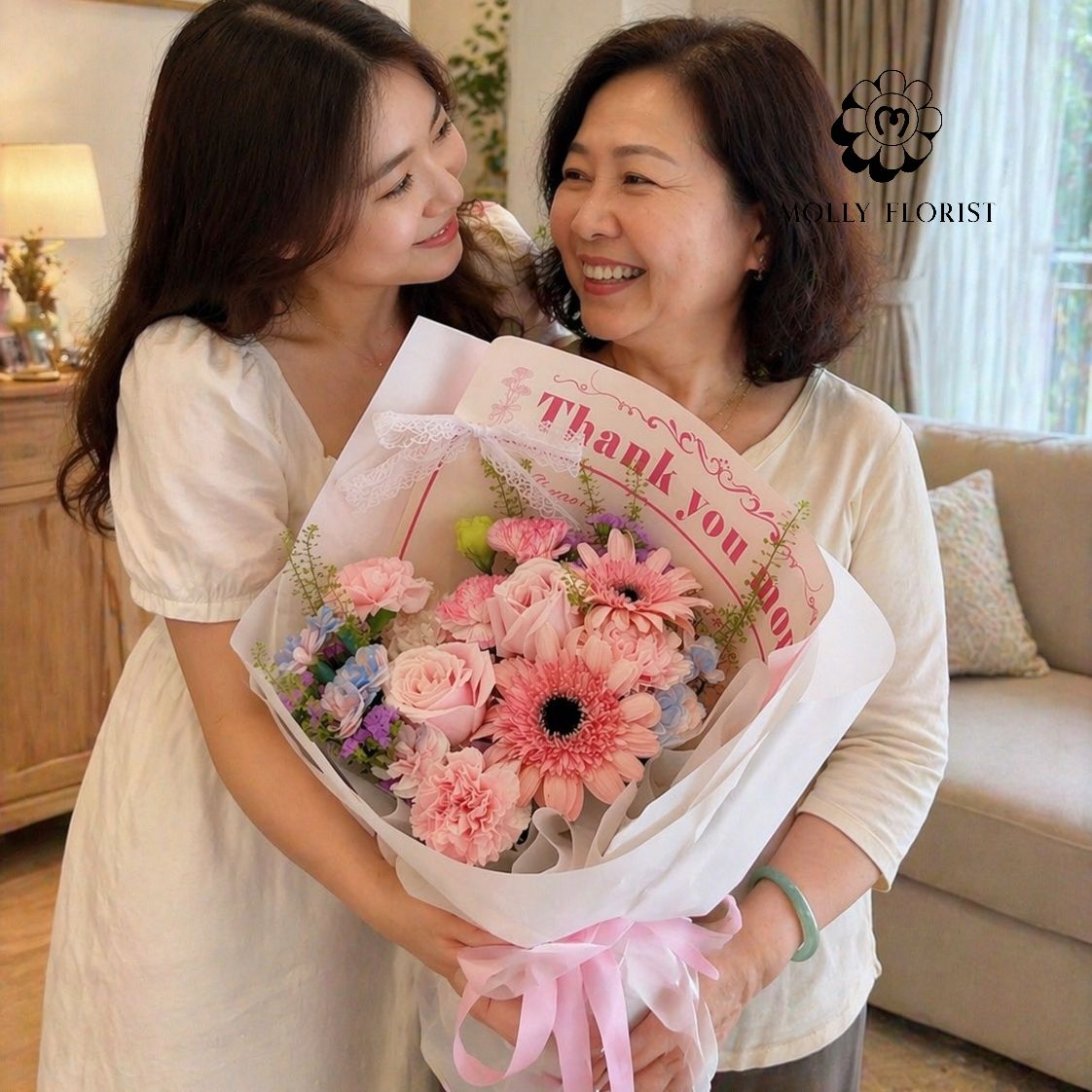 Import lily,rose ,pingpong,matthiola &eustoma fresh flowers . Comes with gift card. Kindly provide card message under remark.